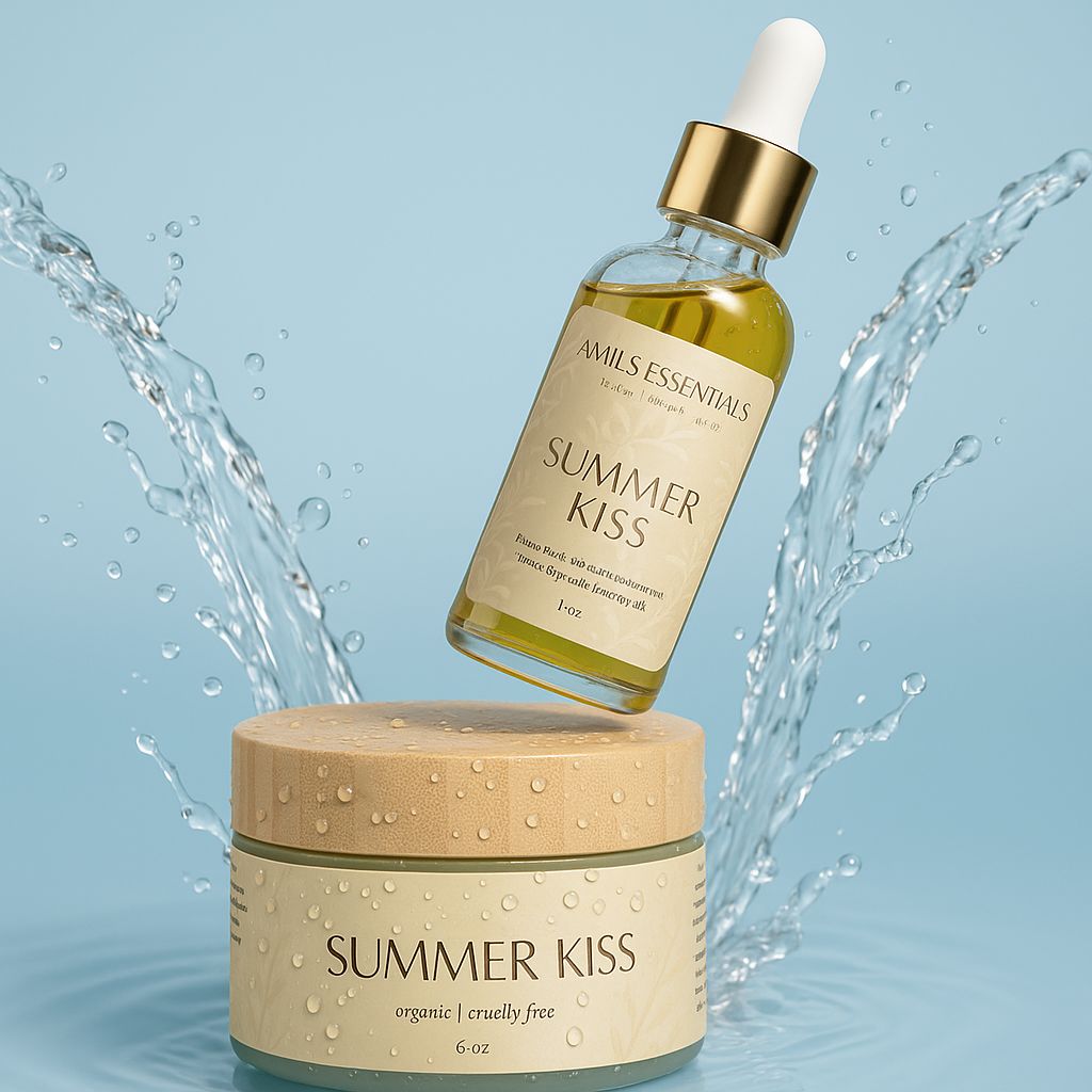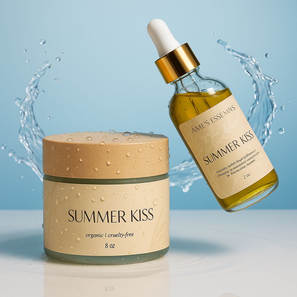Bright, uplifting, and radiant—the Summer Kiss Bundle pairs Amie’s Essentials’ whipped body butter with its matching body oil for all-day hydration and glow. Infused with refreshing notes of lemon chiffon, this duo softens, smooths, and leaves skin delicately scented with sunshine.